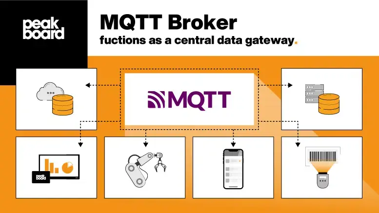 หนึ่งในวิธีที่ง่ายและยืดหยุ่นคือการใช้ MQTT (Message Queuing Telemetry Transport) ซึ่งเป็นโปรโตคอล lightweight ออกแบบมาเพื่อการส่งข้อมูล IoT โดยตรง และเมื่อจับคู่กับ Peakboard แพลตฟอร์มสร้าง Dashboard/HMI แบบ Low-code ที่เชื่อมต่อ MQTT ได้โดยตรง เราจะได้ ระบบ Visualization + Control ที่ผู้ปฏิบัติงานสามารถมองเห็นข้อมูลและโต้ตอบได้ทันทีหน้างาน