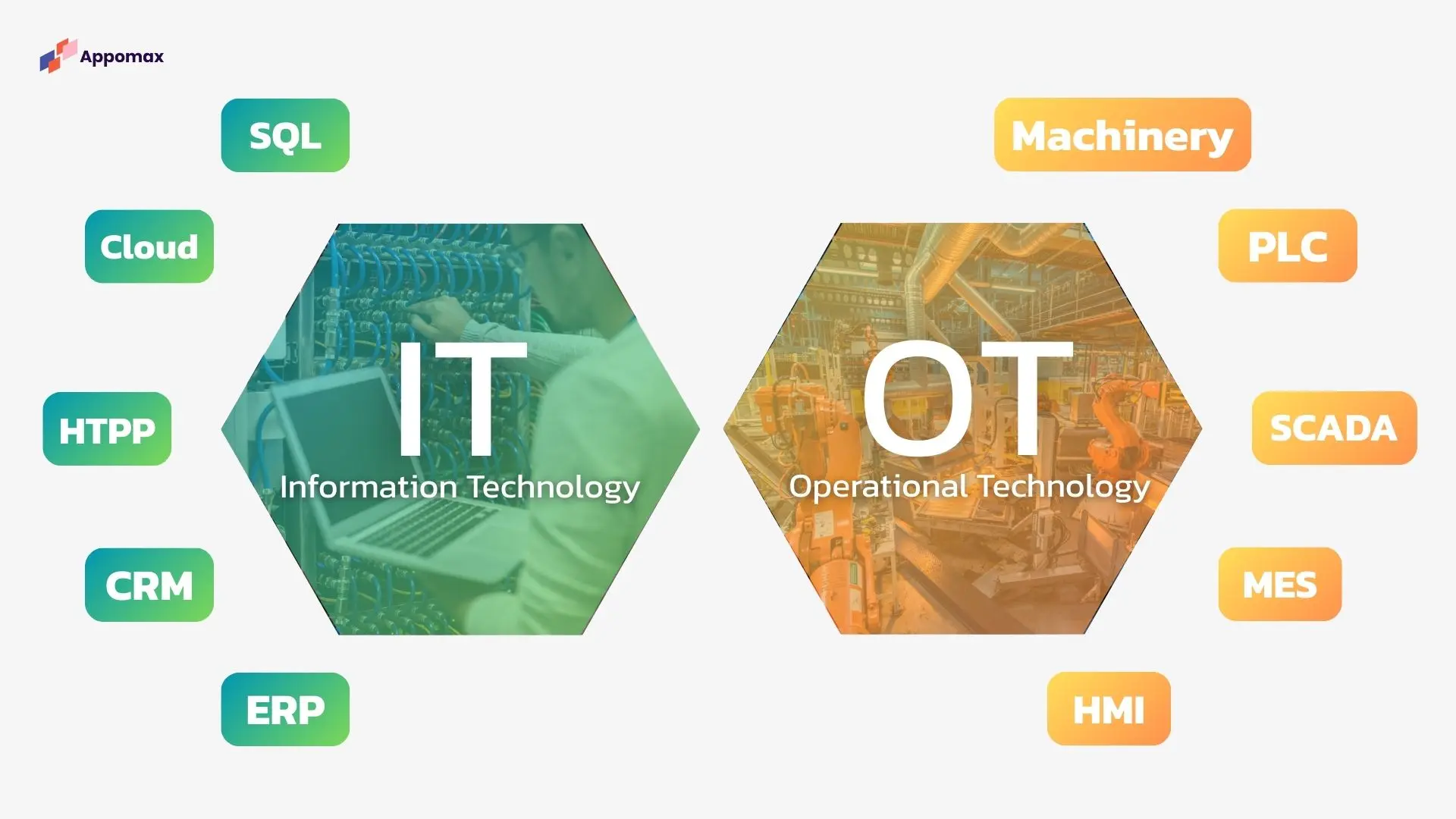 • OT (Operation Technology): PLC/เซนเซอร์, SCADA, MES (Manufacturing Execution System),
