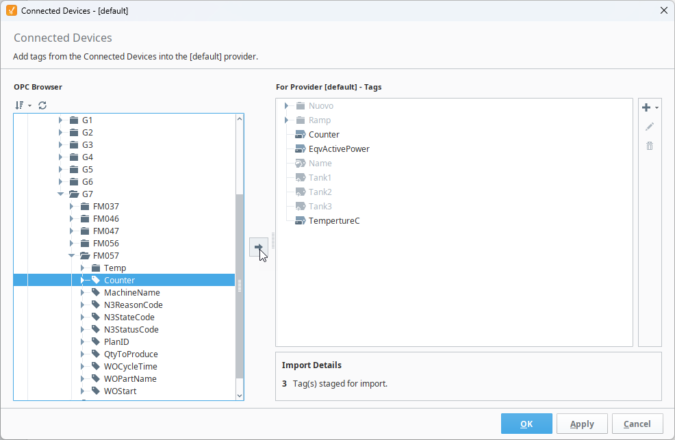Tag Path: Compomax HQ/Machine Monitoring/Forming/G7/FMXXX/Counter (FMXXX คือชื่อเครื่อง e.g.FM055)