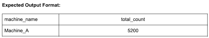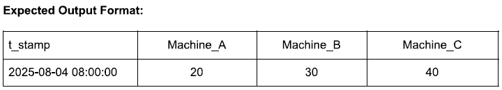 Expected Columns: t_stamp, <Machine_A>, <Machine_B>, …