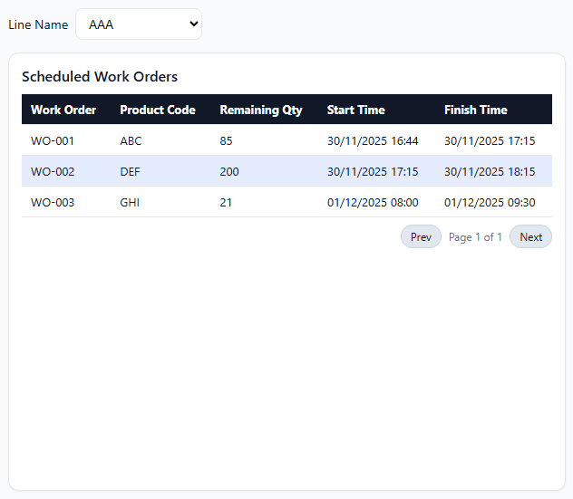 2.1 Named Query – mes_scheduled_workorders_by_line