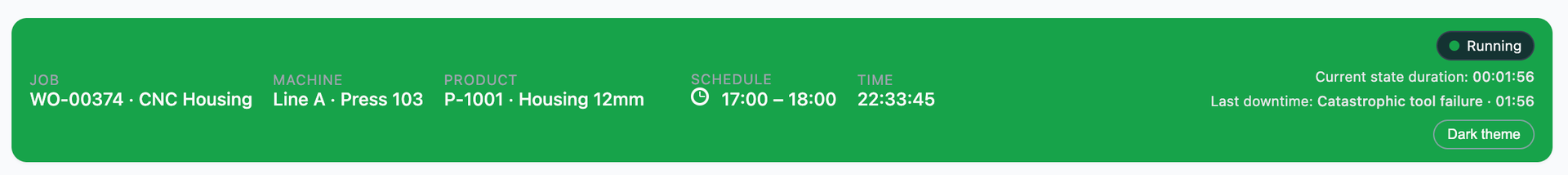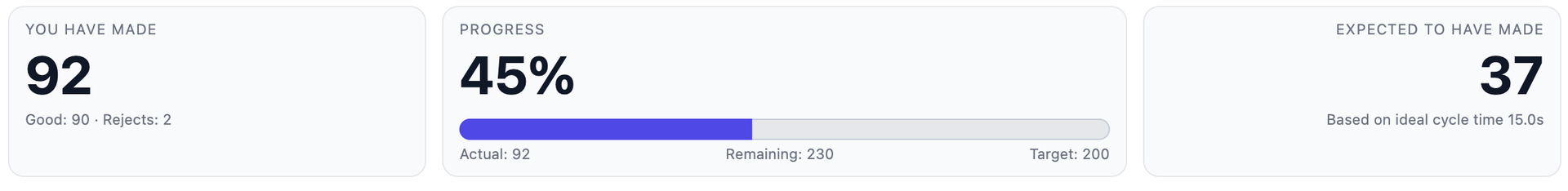 The Production Run Monitoring view provides real-time visibility into the current Production Run for a specific Line.