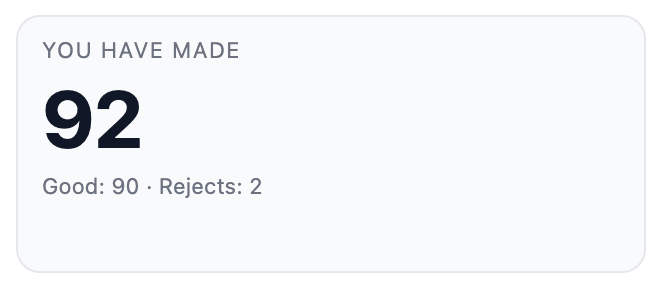 | GoodCountLive | Int8 | Reference: {LinePath}/OEE/OutfeedCount or /Outfeed/Count | Live good count |