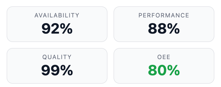 min(100, 100 * cycle_time_s / ideal_cycle_time_s)
