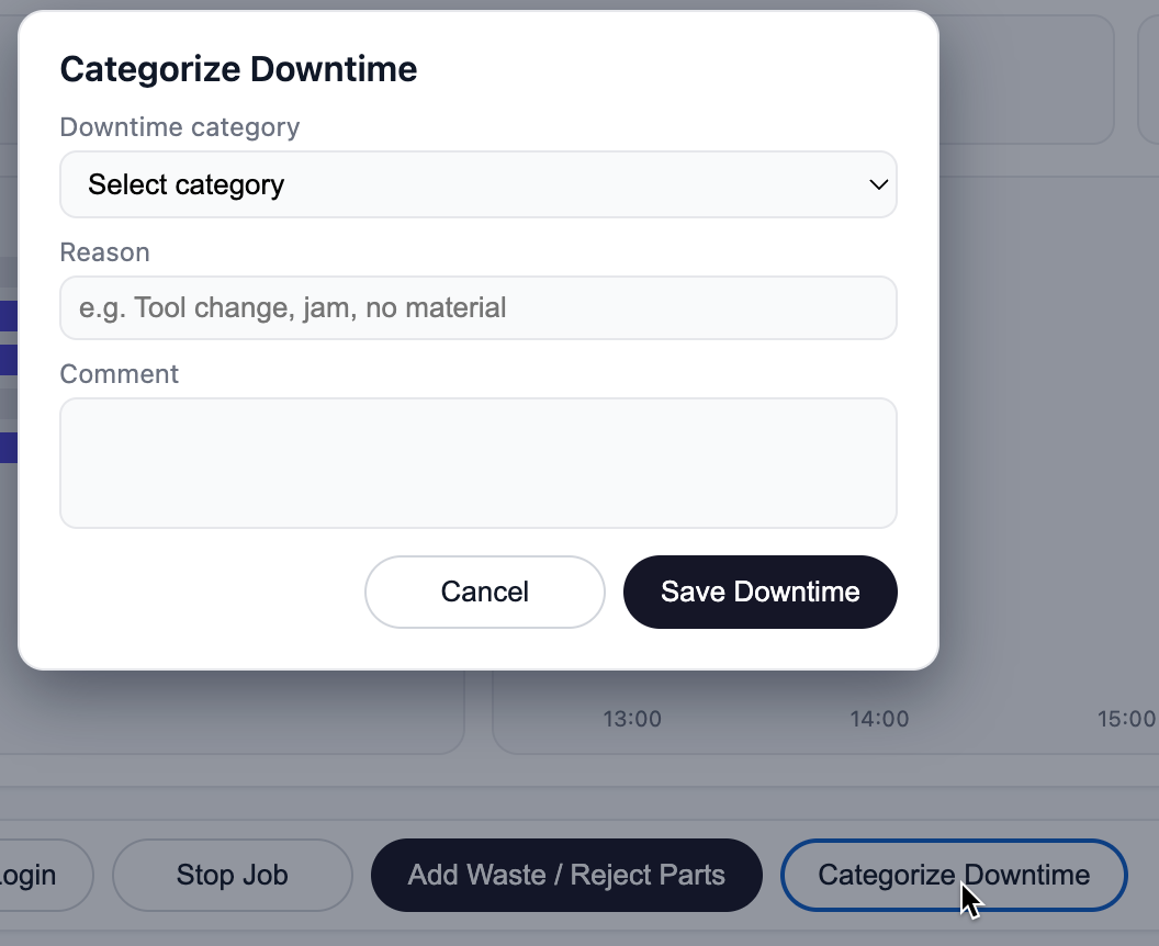 | Downtime Categorization | Opens popup → writes values to UI_RunMonitor.Commands.Dt* tags → Dispatch UDT handles downtime logging |