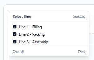 Multi-select Lines → Repeated buttons or multi-select dropdown