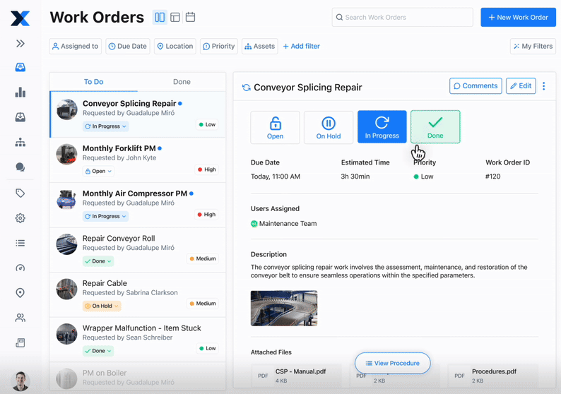 ซอฟต์แวร์ CMMS เช่น MaintainX ช่วยแปลงข้อมูลดิบให้กลายเป็นข้อมูลเชิงลึกที่มีคุณค่า ผ่านแดชบอร์ดและระบบรายงานที่เข้าใจง่าย ด้วยการวิเคราะห์ตัวชี้วัดด้านประสิทธิภาพของเครื่องจักรและผลการทำงานของทีมบำรุงรักษา องค์กรสามารถระบุจุดที่ไม่มีประสิทธิภาพ และตัดสินใจเชิงรุกโดยอิงจากข้อมูลจริง เพื่อใช้ทรัพยากรอย่างคุ้มค่าและยืดอายุการใช้งานของทรัพย์สินได้ยาวนานยิ่งขึ้น